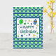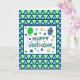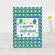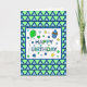 Blaue und grüne Geburtstagskarte für einen Onkel, obwohl Sie sie für jeden anpassen können. Kalkgrüner Ballon und blauer Kuchen.