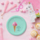 Herzlichen Glückwunsch zum Geburtstag Party Teller mit cooler Eistüte und einer Geburtstagskandle auf türkisfarbenem Hintergrund. So personalisieren Sie Text bearbeiten, um Namen hinzuzufügen.