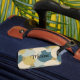 Personalisierte gelb-blaue Gepäckmarke Gepäckanhänger
