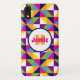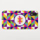 Dieses Handy Gehäuse hat ein buntes Muster von Dreiecken und Quadraten, das wie ein Quilt in hellgelb, navy, grün, rosa, blau, lila, orange und weiß aussieht. Passen Sie den weißen und marineblauen Kreis mit Ihrem Namen, Initialen, Monogramm oder anderen Formulierungen an. Machen Sie den Kreis und nennen Sie ihn so groß oder klein, wie Sie wollen, oder entfernen Sie ihn ganz.