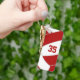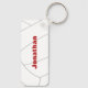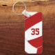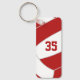 Dieser Schlüsselanhänger zum Thema Volleyball zeigt das abstrakt überdimensionierte Bild eines roten und weißen Volleyballs auf der Vorderseite, auf dem man die Jerseynummer des Athleten anpassen kann - auf der Rückseite steht der Name des Athleten für einen ähnlich übergroßen weißen Volleyball - von katz_d_zynes