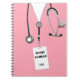 Kreatives Notizbuch für Krankenschwestern mit lustigen rosa Klinikabrieben und ID-Abzeichen-Design. Bearbeiten Sie den Text, um den Namen der Krankenschwester und das Jahr hinzuzufügen.