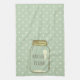 Ein niedliches blaues Maurerglas verziert dieses entzückende Küchentuch mit einem Polkapunkthintergrund des blassen Aqua blauen. Benutzen Sie die Fülle auf den leeren Gebieten, um dieses Tuch mit Ihren Informationen leicht besonders anzufertigen. Diese machen ein großes Polterabendgeschenk, ein Housewarminggeschenk oder ein Hostessengeschenk. Diese koordinieren mit anderen Einzelteilen in unserer hübschen Maurer-Glassammlung.
