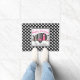 Begrüßen Sie Ihre Gäste mit dieser niedlichen Matte mit einem Polkapunkthintergrund, einem gestreiften Camper, Vögeln, Blumen, Herzen und Sternen. Personifizieren Sie ihn mit Ihrem Namen.