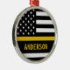 Dünne Gold Line Ornament für 911 Dispatcher und Polizeidienstmitarbeiter. Personalisieren Sie dieses Dispatcher-Ornament mit Namen und Jahr. Dieses personalisierte Dispatcher Geschenk ist perfekt für polizeiliche Dispatcher Wertschätzung, 911 Dispatcher Dankeschön Geschenke, Dispatcher Ruhestand Geschenke oder Gastgeschenke. Bestellen Sie diese Dispatcher Weihnachtsschmuck Großhandel für die Polizei oder Feuerwehr. COPYRIGHT © 2020 Judy Burrows, Black Dog Art - Alle Rechte vorbehalten. Personalisierte Goldflagge US 911 Metal-Ornament-Dispatcher
