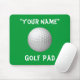 Personalisierte Golf-Mausunterlage. Addieren Sie Ihren Namen, um diese GolfMausunterlage zu personifizieren. Ändern Sie die Hintergrundfarbe, indem Sie besonders anfertigen es Verbindung anklicken.