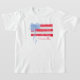 Feiern Sie im patriotischen Stil mit einer persönlichen Note in diesem großmillennial-inspirierten Mädchen-T-Shirt, das klassische rote Streifen und eine schöne blaue Wasserfarbschleife anstelle traditioneller Sterne zeigt. Unter der Flagge fügt ein benutzerdefinierter Name in eleganter roter Schrift einen besonderen und bedeutungsvollen Detail hinzu.