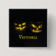 Personalisierte Halloween Button Abzeichen. Das Kürbisdesign zeigt beängstigende Kürbisgesichter, die aus der Dunkelheit in einem unheimlichen gelben Glanz herauskommen. Personalisieren Sie, indem Sie den Namen oder Text Ihrer Wahl ändern.