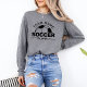 Custom Soccer Team Long Sleeve T - Shirt für Mamas Design verfügt über ein einfaches und stilvolles Fußball-Logo mit modernem, individuellem Text. Personalisieren Sie Ihre persönlichen Daten mit dem Teamnamen Ihres Spielers. Schwarzes Design und graue Shirt-Farben können modifiziert werden.
