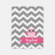 Ein modernes graues Zickzack Muster und eine niedliche rosa Eule wird auf dieser Qualitäts-Fleecedecke gekennzeichnet. Personifizieren Sie leicht mit dem Namen eines Kindes.