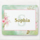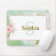 Brillieren Sie Ihren Arbeitsbereich mit diesem benutzerdefinierten Blumenmauspad, das einen weichen grünen Aquarellhintergrund und Ihren personalisierten Namen und Ihren Initialnamen enthält. Elegante rosafarbene Blume und flauschige Akzente verleihen der Touch eine frische, weibliche Note, was sie zu einem idealen Geschenk für Profis, Studierende oder alle, die ein personalisiertes Dekor schätzen. Dieses Mauspad wurde für Schönheit und Funktionalität konzipiert und verleiht jedem Arbeitsumfeld Charme.