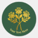 Mit diesen eleganten Aufklebern verleihen Sie Ihren Schreibwaren, Kunsthandwerk und Geschenkartikeln einen blumigen Charme. Die Aufkleber zeigen ein Bild von drei Rose Blume, mit einem goldenen Imitat, auf grünem Hintergrund. Personalisieren Sie Ihren Namen, einen Gruß oder einen anderen Text Ihrer Wahl.