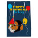 Fügen Sie Ihre eigene Nachricht und Ihren Namen zu dieser Geschenktasche, um eine besondere Geburtstagsgeschenktüte für Besitzer von Guinea Schweinefleisch zu erstellen. Dieser Geschenksack zeigt Guinea-Schweine, die in Party-Hüten mit einem vorne und einem anderen hinten gekleidet sind, sowie bunte Geburtstagsballons-Set vor marinebaublauem Hintergrund.