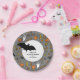 Kreatives Halloween-Party oder personalisiertes Halloween-Geschenk von Goodies-Tellern mit einer fliegenden Fledermaus auf einem Hintergrund von Kürbissen, Monden, Süßigkeiten, Hexen und Spinnen. Text bearbeiten, um Namen hinzuzufügen.