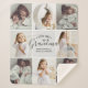 Dieses gemütliche Foto Collage Decke Design zeichnet sich durch einen sanften, neutralen Hintergrund aus. Neun individuelle Fotos sind in einem sauberen, modernen Gitter angeordnet und sorgen für Herzwärmung und persönlichen Sake. Das Zentrum wird durch seine elegante, handgeschriebene schwarze Schrift und den schlichten, modernen Schriftart, der eine herzliche Botschaft ausdrückt, mit den Herzen für mehr Wärme ergänzt. Mit seinem zeitlosen, minimalistischen Stil und seiner einladenden Farbpalette eignet sich dieses Design perfekt, um hochgeschätzte Erinnerungen zu präsentieren und Großmüttern ein wohltuendes Geschenk zu machen, das sich perfekt zum Geburtstag, Muttertag, Weihnachten oder zu jeder besonderen Feier der familiären Liebe eignet.