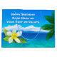 Personalisierte hawaiische Geschenk-Taschen mit Ihrem Text oder Löschung. Glückliche hawaiische Geburtstagsversorgungen oder ändern den Text zu JEDER MÖGLICHER FEIER. Hübsche hawaiische Geschenktasche mit einem netten Türkisblauozean mit schwacher hawaiischer Insel im Hintergrund. Palmen-Baumaste, die über dem Ozean schweben. Hübscher Plumeria-hawaiische Blume betont den Vordergrund.