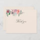 Diese elegante Hochzeitskarte "Danke" ist mit zarten Aquarellblumen geschmückt, die kunstvoll arrangiert sind, um einen romantischen und zeitlosen Look zu schaffen. Die blumengeschmückte Gestaltung der Ecke zeigt eine harmonische Mischung aus Rosa, Lavendel, Bordeaux und Jägergrün, mit dezenten Akzenten gebrannter Orange, die Wärme und Tiefe verleihen. Ein atemberaubender Weg, Ihre Gäste an Ihre Hochzeit zu erinnern und ihnen mit der perfekten Karte zu danken.