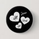 Dieses niedliche Design fängt mit einem reichen schwarzen Hintergrund an und bietet 3 koordinierende Herzen in einem Cluster, in dem die Namen Ihres Liebsten... in schwarzem Schriftart gehalten werden. Dein Name steht gleich darüber. Fügen Sie Ihre Namen hinzu, indem Sie die Eingabeaufforderung "Diese Vorlage personalisieren" befolgen. Macht ein wunderbares Geschenk für Mama! Dieser Knopf würde auch auf einer koordinierenden Schürze schlagen!