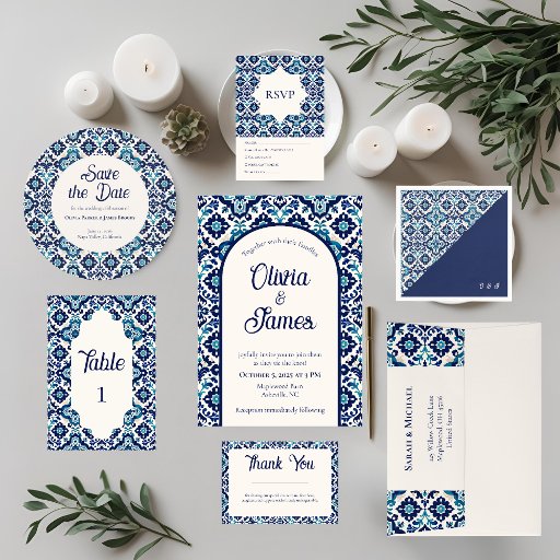 Elegant Blue Mediterranean Tile Wedding StationeryDesignt von Violet Angel