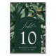 Elegante botanische Hochzeitskarten mit Tischnummer, Namen und Hochzeitsdatum, eingebettet in einen Bogenrahmen, umgeben von Eukalyptus, Farne und anderen üppigen Grünpflanzen. Der dunkelgrüne Hintergrund verleiht dem Design ein Bio Ambiente und unterstreicht die natürliche Eleganz. Personalisieren Sie die Nummer für jede Tischkarte und fügen Sie sie Ihrem Warenkorb hinzu, um eine raffinierte, naturlich inspirierte Atmosphäre an Ihrem Hochzeitsempfang zu schaffen. Ideal für rustikale Hochzeiten, Gartenfeiern oder Hochzeiten mit botanischem Thema.