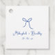 Gastgeschenk Hochzeit-Tags mit blau-weißem, weißem, weißem, weißem, weißem, handgezogenen Bow. Personalisieren Sie mit Ihren Namen und Hochzeitsdatum in blauem handgeschriebenem Schriftart.