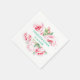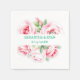 Herrliche Servietten aus Hochzeitspapier mit rosa und weißen Rosen mit Diamantelementen, schlaue grüne Blätter. Fügen Sie Braut- und Bräutigam-Namen und Hochzeitstag in den personalisierenden Bereich hinzu.