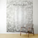 Elegantes personalisiertes Hochzeit "Foto-Stand-Hintergrund-" Silber Bokeh funkelnde Lichter.