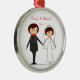 Hochzeitscharakter Personalisierte Ornamente. Mit einer kaukasischen Braut und einem Bräutigam. Passen Sie dies mit den glücklichen Paarnamen und dem Jahr der Ehe an.