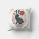 Personalisierte Hasen aus Holz, Kissen aus der Folklorekunst mit erdigen Herbstfarben und Blumen in braun und schwarz auf mauvem Hintergrund. Magischer Hase und skurriler Stil für den Träumer in Ihnen!