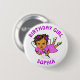 Adorable Lila und rosa "Birthday Girl" Taste afroamerikanische Fee. Whimsical Volkskunst Art Geburtstag Knopf.