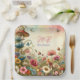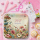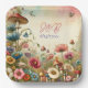 Hübsche Hütte thematische Teller für eine Hochzeit, Probe Dinner oder Brautparty Party. Aquarellpilze, Blume und Schmetterlinge in Lila, staubblau und beige. Fügen Sie die Initialen des Paares und das Hochzeitsdatum in den personalisierenden Bereich ein.