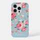Personalisierte Hütte Rosa Rosen auf blauem Hinter iPhone Hülle