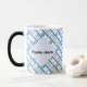 Zauberhafte Tasse mit der blauen und weißen israelischen Flagge mit dem Wort ISRAEL unter den Fahnen. Design ist gekachelt für eine bessere Ästhetik. Ein Fraktal weiße quadratische Quadrate bietet einen Platz für Ihren Namen für eine personalisierte Touch. Wenn du will, ein individuelles Geschenk zu erstellen, füge einfach den Namen eines anderen hinzu. Die Flagge ist weiß mit einem blauen Stern von David und einem blauen Streifen in der oberen und unteren Ecke.