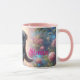 Personalisierte Kaffee-Tasse - Individuelle Name oder Meldung | Einzigartige Geschenkidee - Hübsche pinkfarbene Blumenkaffee-Tasse mit einem bezaubernden schwarzen Mops Welpe und einer aufregenden Nachricht.