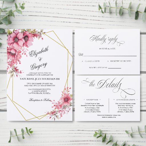 Pink Floral Wedding Invitation SuiteDesignt von Phyllis Waugh