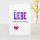 Dieses ist eine hübsche Geburtstagskarte für einen deutschen Freund oder einen Verwandten. Das Wort LIEBE auf der Front ist in den blau-rosa farbigen Hauptstadtsbuchstaben, die mit einem Muster der weißen Blumen bedeckt werden. Der Gruß ist "Alles Liebe zum Geburtstag" (= "mit Liebe auf Ihrem Geburtstag"). Ein tiefrosa Herz hängt vom Buchstaben L, und dieses kann mit Ihrem bevorzugten Namen oder Text personalisiert sein.