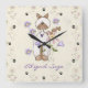 Personalisierte Katze, Blumen und Quadratische Wanduhr