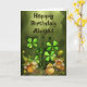 Vier-Leaf-Clovers und Irish Leprechaun Gnomes Happy St. Patrick's Day Card | Personalisieren Sie die Vorderseite mit einem Namen | Inside Greeting - "Möge Ihr Herz leicht und glücklich sein, Möge Ihr Lächeln groß und breit sein und Mögen Ihre Taschen immer eine oder zwei Münzen haben! Alles Gute zum Geburtstag! | Der Gruß kann personalisiert zu lesen, wie Sie wünschen.