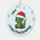 Feiern Sie ein magisches erstes Weihnachtsfest mit einem personalisierten Keramik-Ornament-Sake! 🦖 Niedliche Triceratops mit Weihnachtsmannmütze ❄️ Schneeblauer Hintergrund, dass Pop in Fotos ✨ Ihren Babynamen + Jahr hinzufügen - Instant Memory 🎁 Perfect gift gift gift gift for Eltern, Großeltern, und Familie Wie personalisieren: Klicken Sie auf Personalisieren, ersetzen Sie "Name" und "Jahr", Vorschau und fügen Sie in den Warenkorb. Füllen Sie den Look mit unseren passenden Strümpfen, Packpapier, Geschenktasche, Taschentuch und Geschenktafel aus dem Triceratops Weihnachtsfest Set!