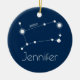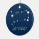 Personalisierte Zwillings-Tierkreis-Konstellations-Verzierung. Die Konstellation der Zwillinge auf einem Marine-Hintergrund kennzeichnend, macht diese personalisierte Zwillings-Verzierung einen perfekten Zusatz zu Ihrem Weihnachtsbaum. Zwillinge ist das dritte Zeichen des Tierkreises und schließt alle Einzelpersonen mit ein, die vom 21. Mai - 20. Juni geboren sind. Das Symbol der Zwillinge ist die Zwillinge. Die Persönlichkeits-Merkmale der Zwillinge sind intellektuell klug, neugierig, Phasen- und jugendlich. Der Birthstone der Zwillinge ist die Perle und der regierende Planet der Zwillinge ist Mercury. Hintergrund-Farbe und Text können besonders angefertigt werden