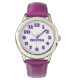 Kinderuhr aus Edelstahluhr mit lila Lederarmband