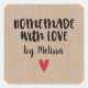 Ein personalisierter Aufkleber "hausgemacht mit Liebe" auf einem kraftstoffförmigen Hintergrund. Machen Sie es Ihren, indem Sie Ihren eigenen Namen hinzufügen. Eine hübsche Touch für alle Ihre handgefertigten Geschenke. Entworfen für Sie von BlackBerry Boulevard.
