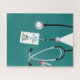 Kreatives "Best Nurse"-Puzzle mit Peeling, Stethoskop, lustigem Schweizer Armeemesser und ID-Tag. Text bearbeiten, um den Namen zu personalisieren.