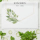 Fügen Sie Ihrer Küche eine besondere Touch hinzu! Dieses wunderschöne Handtuch mit Ihrem Familiennamen in einem schönen geometrischen Goldrahmen mit grünen Blätter.