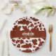 Personalisierte klassische und trendige braune und weiße Kuhhaut Flecken Textur Geburtstagsparty benutzerdefinierte Jahr und Name Geschirr. Kuh fleckt Tierdruck