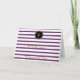 Eine Karte mit lila Linien, Streifen auf weißer Oberfläche mit personalisiert gepunktetem Kreis in schwarz. Es ist mit Ihrem Initial und Namen angepasst. Es gibt viele gestreifte Dankeschön-Karten in anderen Farben auch im gleichen Stil.