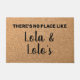 Es gibt keinen Ort wie Lola & Lolo's personalisierte Begrüßungstür verfügt über schwarze Skript-Schriftart. Personalisieren Sie den Text nach Belieben auf Ihren Namen.