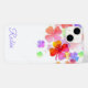 Hübsches iPhone Gehäuse in Weiß mit Grafiken von bunten vier Blätter Kleeblatt, über die Oberseite. Personalisieren Sie den eigenen Text, für sich selbst oder als großartige Geschenkidee für sie.