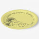 Sehr schöne pastellgelbe Papiertafel mit personalisierter Nachricht und Lüstern mit Schmetterlingen.