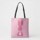 Kindermädchen-Ei-Jagd-Tasche rosa Häschen-Silhouette-Ostern personalisierte. Rosa Häschen-Silhouette mit den flaumigen Schwänzen. Personifizieren Sie mit dem Namen Ihr Kindes in der Mitte. Ändern Sie die Farbe des Textes, indem Sie "wählen, besonders anfertigen". Hintergrund ist hellrosa. Niedliche personalisierte Tasche für Osterei jagt, Leckereien vom Osterhasen oder Kinder, die Liebehäschenkaninchen entwirft. Moderne stilvolle Ostern-Entwürfe für Kinder. www.SamAnnDesigns.com